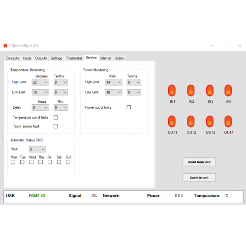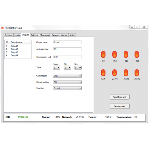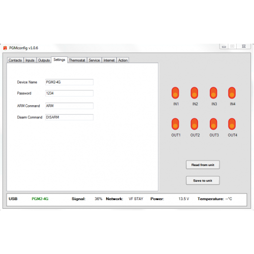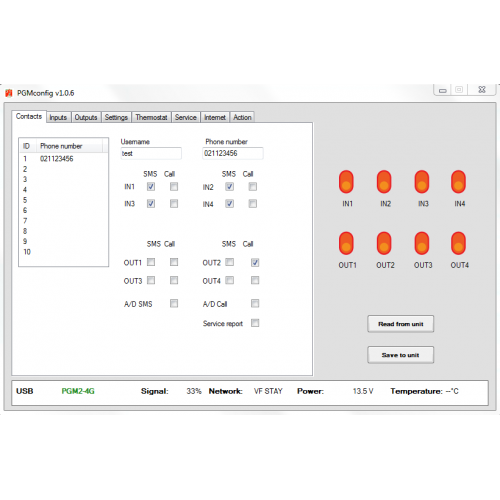 The USB-PC connection allows you to edit text (commands), function, name etc. to maximum adaptation to your application via free software. All setting can also be programmed via SMS commands.