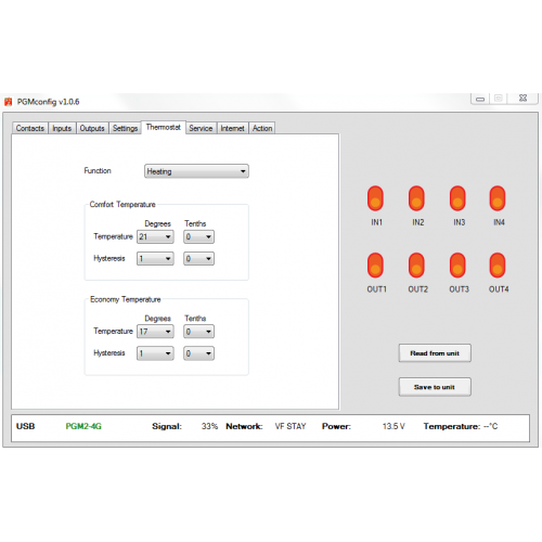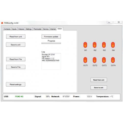 Through PGM2-4G SMS communicator can be remotely controlled device such us PLC, garage door, gates, controllers etc and may indicate a malfunction Alarms or loss of liquid in tanks, emergency conditions, or simply using a suitable sensor to watch object or temperature limits with thermostat function.