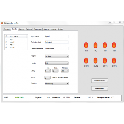 • Inputs can be use for arming/disarming the communicator from remote device